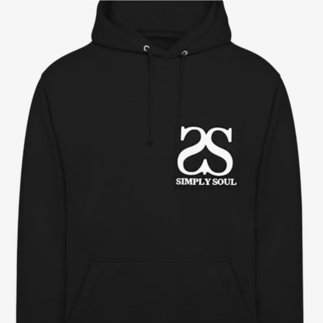 Official Simply Soul logo printed on the left side of chest in white. Hoodie features a double fabric hood, draw cord and front pouch pocket. 80% cotton, 20% polyester.